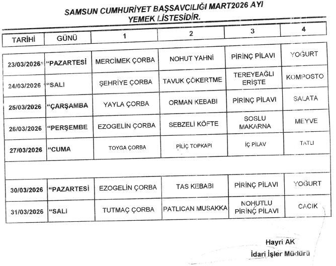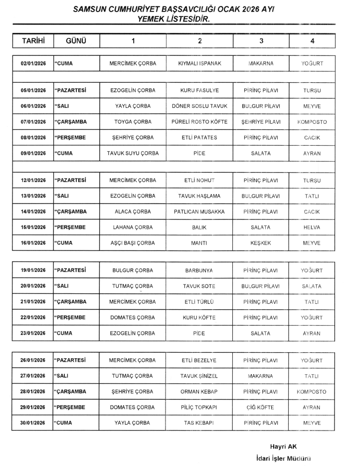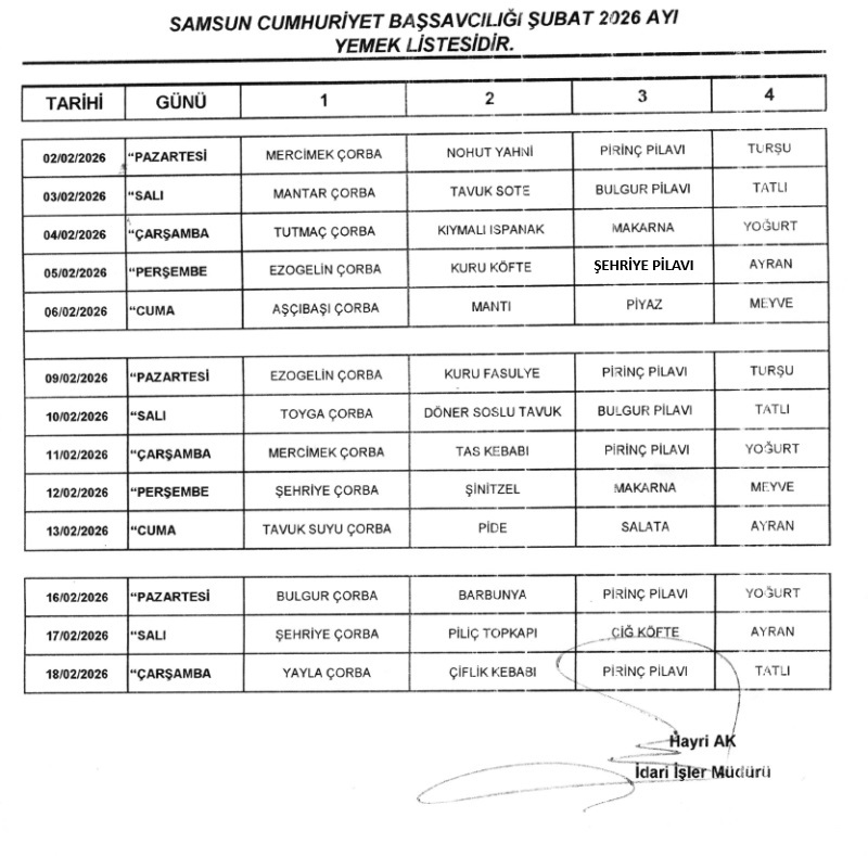 YEMEK LİSTESİ